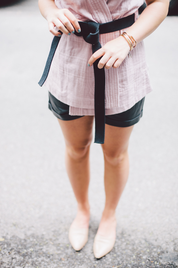 As I was debating on the vest or coat, I pulled the trigger on perhaps the most karate kid item possible without buying the real deal. Whilst I never mastered the kick or punch, I still received my black belt- kudos to master Mango. This baby pink vest is given a modern update when worn as a top, you know for that taste of je ne sais quoi... (meant in 100% sarcasm). I do suggest ordering a size up because if you're like me, this vest will be a popular layering piece soon enough. Other than my new favorite topper, I've finally rejoined the leather bandwagon after ruining my short-lived pair from Topshop (side-eye to spilled drinks).